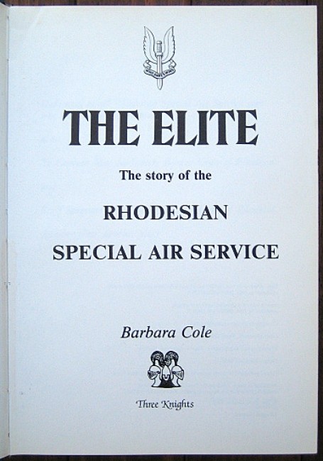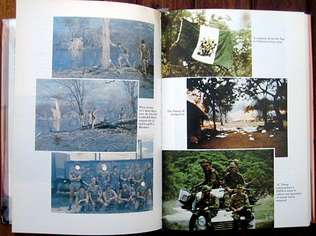 iv+450pp. Hardcover with price-clipped DW, 20 coloured and 16 black & white plates, text maps, Roll of Honour, chronology, glossary, bibliography, index. Included is a scarce bookmark depicting the Rhodesian Flame Lily, the back of which has the following wording printed, 'Sold in aid of: SOUTH AFRICA RHODESIA ASSOCIATION ANTI TERRORIST FUND'