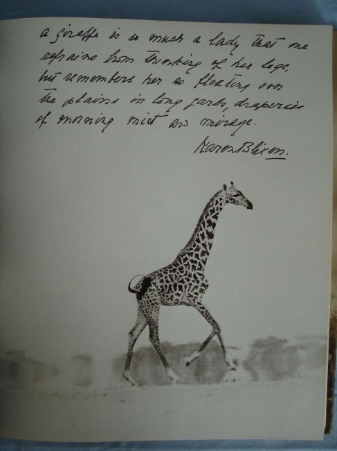 Grey linen-covered boards with titles imprinted on front and spine. Dust jacket illustrated with photograph of elephants. Historical photographs of hunting in Central Africa, including pictures of Karen Blixen, Selous and Roosevelt.