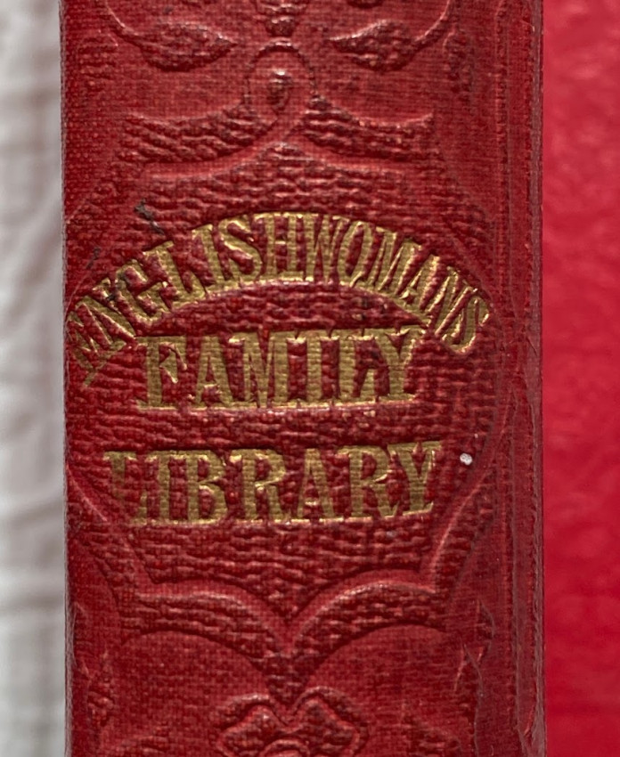 The spectacular presentation case is advertised in the 10-page publisher's catalogue for 1843 bound in at the rear of The Mothers of England [see lot 133, in the present sale], in which Fisher, Son & Co. offer a "Unique and Elegant Present. The Englishwoman's Family Library. Bound uniformly, and enclosed in a Morocco Case, with Glass Front and Lettered. Cloth, neat, 1l. 19s. - Cloth, elegant, gilt edges, 2l. 7s. – Morocco elegant Il 3s. – Morocco case, 10s. extra; and may be had separately".