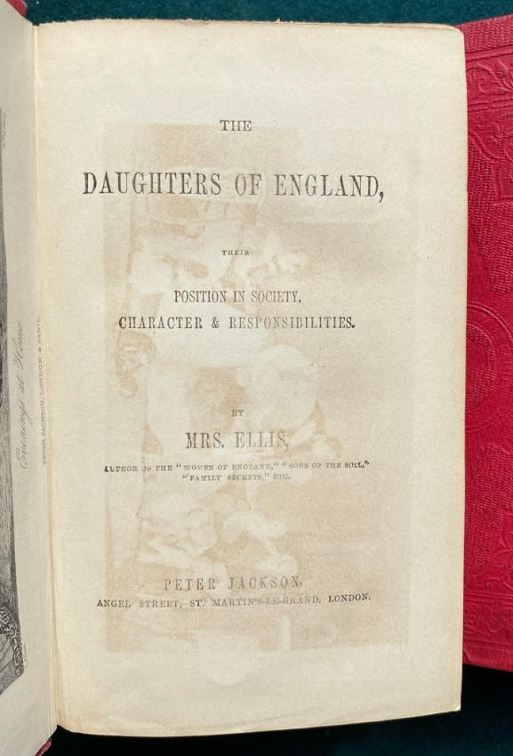 d) The Mothers of England. Their influence & responsibility. London: Peter Jackson, late Fisher, Son, & Co, [no date]. (Small split to the lower joint). First published later in 1843.