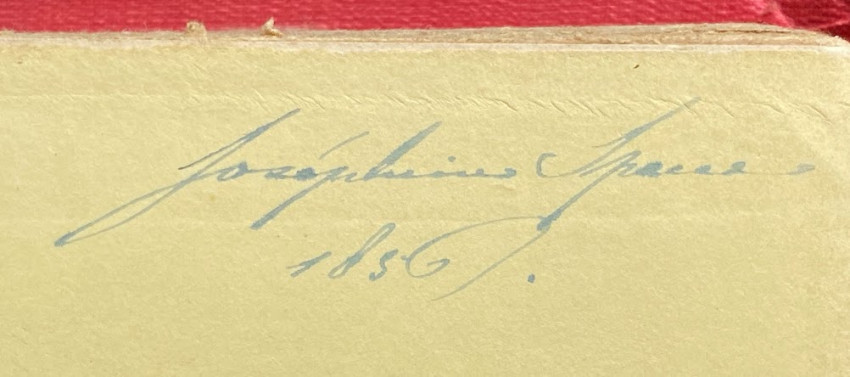 b) The Daughters of England. Their position in society, character & responsibilities. London: Peter Jackson, [no date]. Provenance: Josephine Sparre (inscription dated 1856) – possibly, Josephine Sophie Anette Charlotte Sparre af Söfdeberg (1829-1892, lady-in-waiting, and a mistress to King Charles XV of Sweden): an ironic twist given the subject of the book. First edition published 10 January 1842.