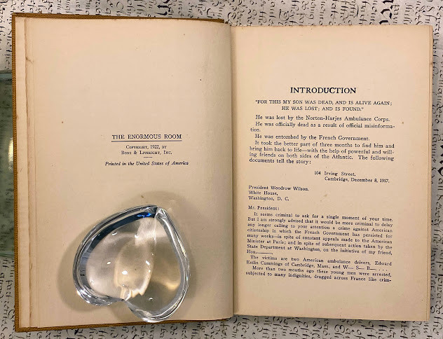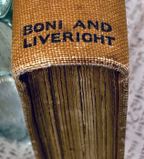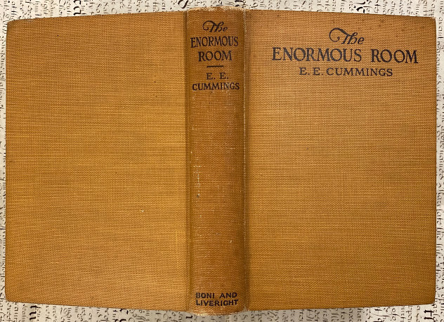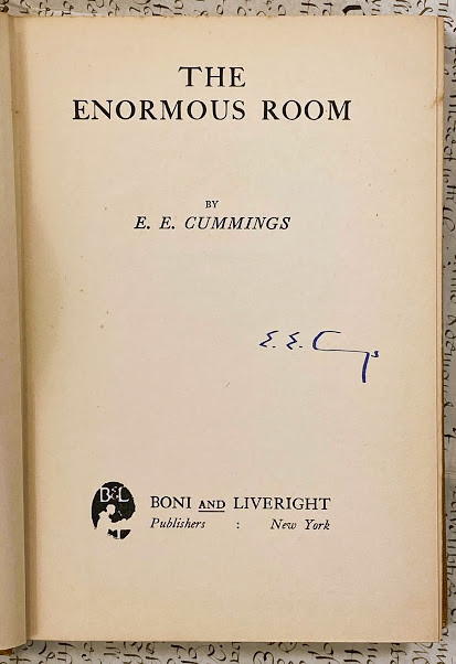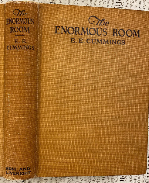 The Enormous Room. New York: Boni and Liveright, 1922. Octavo (7 7/8 x 5 ½ in; 200 x 140mm). Pp. [i-iv; i-] vii [-viii;] 9-271[-272]. Pp.219/220 uncancelled. (Occasional small marginal tears, pp. 131/132 upper outer corner folded and almost broken off, pp.243/244 with chip out of lower blank margin.) Original light brown cloth, the upper cover and spine lettered in dark brown (light discoloration to spine, extremities lightly bumped). Provenance: the title signed in ink by E.E. Cummings.