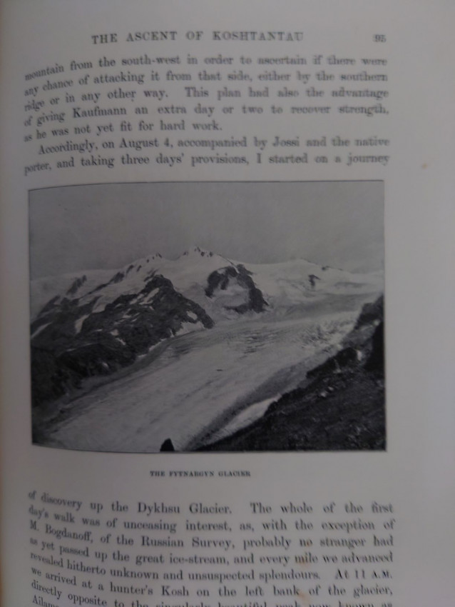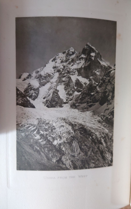 London, Edward Arnold, 1st Edition. 290 & 278 pages. Condition: Very Good. Dust Jacket Condition: No Dj. large 4tos . Vol II in original green cloth gilt covers with Vol I rebound in matching cloth gilt. Vol I has 39 full page ills , 1 map and one folding panorama which a small loss to the left hand corner of the picture. Rough cut paper, some staining and marking to this volume and some warping/crinkling of the pages. Vol II has 76 full page illustrations from photographs, 3 maps, 2 panoramas numerous text illustrations and vignettes in the text, text in lovely condition but some spotting, tissue guard present for all of the illustrations. Folding map of the Klukhor Group has been torn with loss. All other maps and panoramas in vg condition. Scarce 2 vol first edition. Heavy Books!