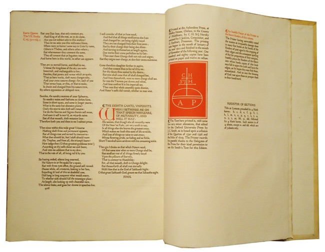 Printed at the Ashendene Press, at Shelley House, Chelsea, by the banks of ‘sweet Thames,’ by C.H. St J. Hornby with the help of I. Jenkins, Compositor, & G. Faulkner, Pressman. The printing was begun in the month of May of the year 1924 and finished in the month of July of the year following.