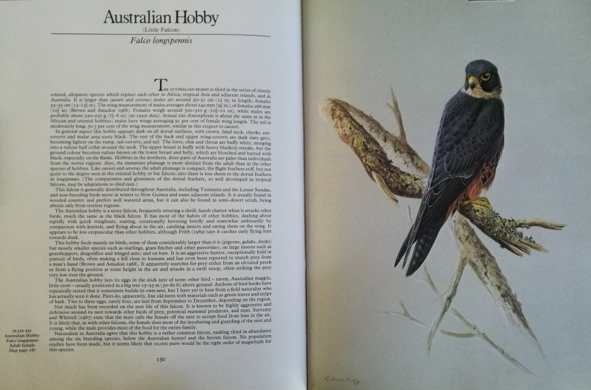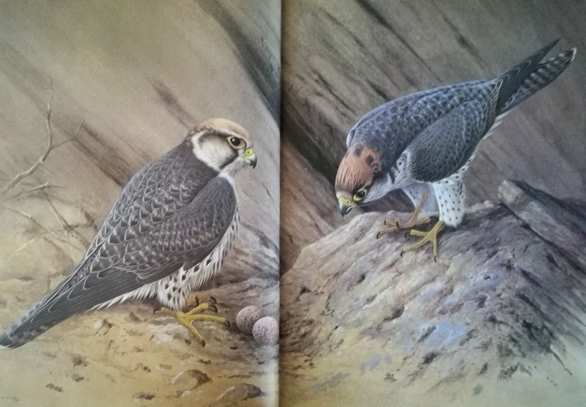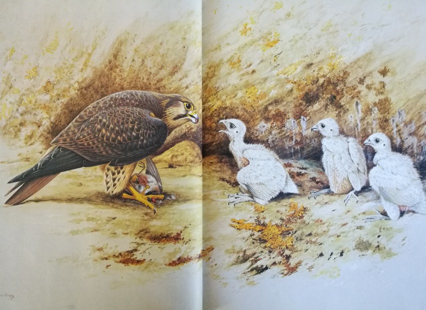 Plastic-protected colour dustjacket, unclipped (18 pounds net), with a painting of a female Peregrine Falcon, original blue cloth-boards, plain blue endpapers, 190 pp of text, bibliography and index all on matt art-paper and illustrated in the text with 4 double-page and 39 full-page colour paintings of the various species.