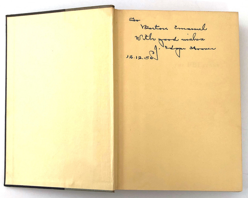 The first edition of this title with an Introduction by J. Edgar Hoover, the long time Director of the FBI, and inscribed by him on the front free endpaper, dated 12.12. 56, the year of publication of the book. 8vo. 256pp. In the original cloth backed and paper covered boards. Lacking the dustwrapper. Slight wear but a very good tight copy.