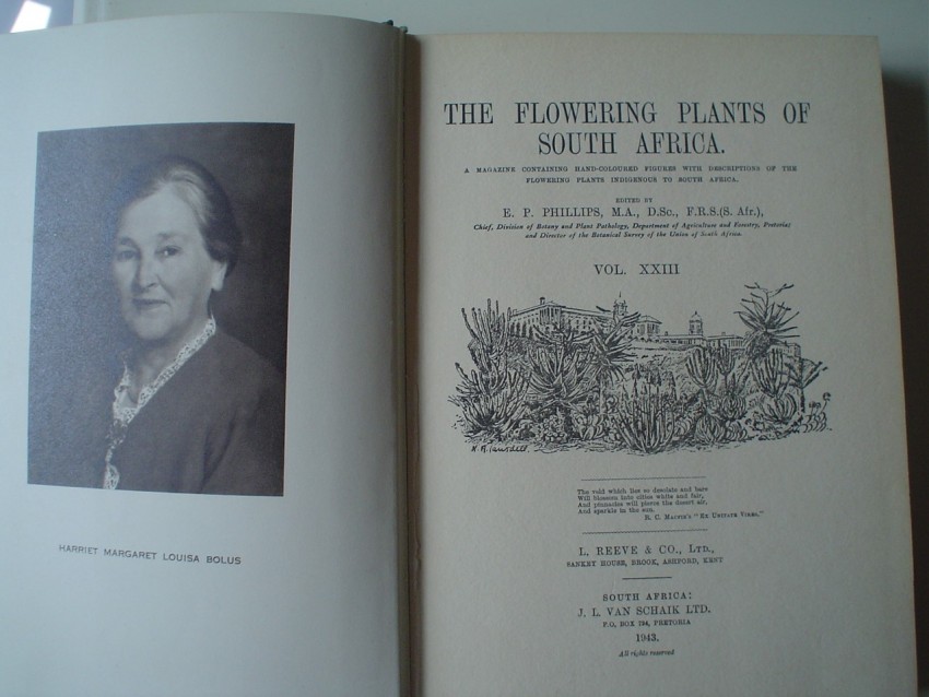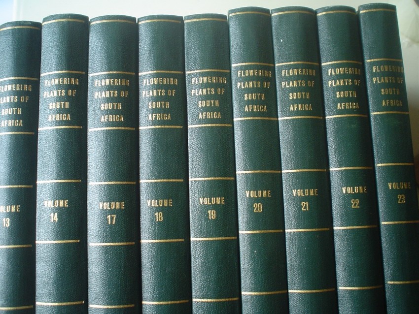 A Magazine containing hand-coloured figures with descriptions of the flowering plants indigenous to South Africa. Here are 9 volumes together. 13, 14, 17-23. Five volumes edited by I.B. Pole Evans and the others by Phillips. Every second page per book is a plate in colour. These books are all in very good condition, though ex-library.