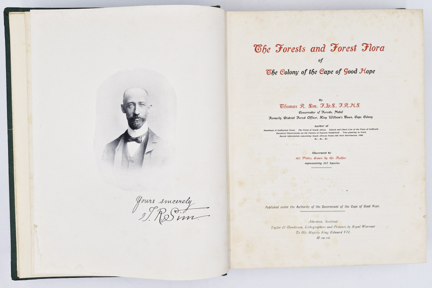Gunn (Mary) & Codd (L.E.) Botanical Exploration of South Africa, Cape Town 1981, pages 323-324. Sim's Forest and Forest Flora was his major work along with his Forest Flora and Forest Resources of Portuguese East Africa. Both books were illustrated with his clear-cut and rather diagrammatic sketches and are milestones in our knowledge of the tree flora of Southern Africa.