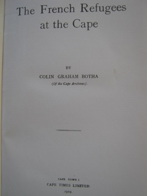 Written by the man who became South Africa\'s chief archivist, this is a concise but invaluable and well-illustrated record of the Huguenots who took refuge at the Cape in the late seventeenth century. Botha\'s introduction begins: \"The coming of the French Refugees to the Cape is one of the most important and interesting episodes in the history of South Africa. The late Dr George McCall Theal, in his \'History of South Africa\', has presented us with a vivid picture of the Refugees, but some additional facts will, it is hoped, prove not uninteresting . . . \"
