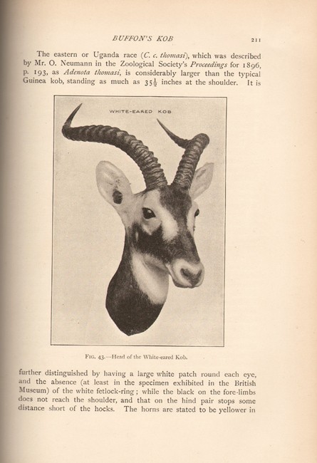 Czech: An annotated Bibliography of African Big Game hunting Books, 1785 to 1950, page 100/101, ‘An excellent work that covers the natural history of both large and small game animals of Africa. Lydekker utilized segments of text he had written for The Great and Small Game of Africa edited by H.A.Bryden, with much new material added. Especially interesting are the hunting vignettes related by numerous sportsmen such as Selous, Neumann, Powell-Cotton, and others in books and journal articles.’