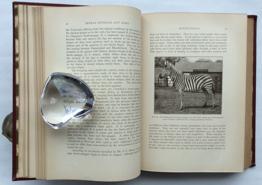 Original maroon cloth, lettered in gilt on upper cover and spine, distinctive Rowland Ward zebra-skin patterned endpapers (spine slightly discoloured [see images], extremities slightly bumped, light surface damage).