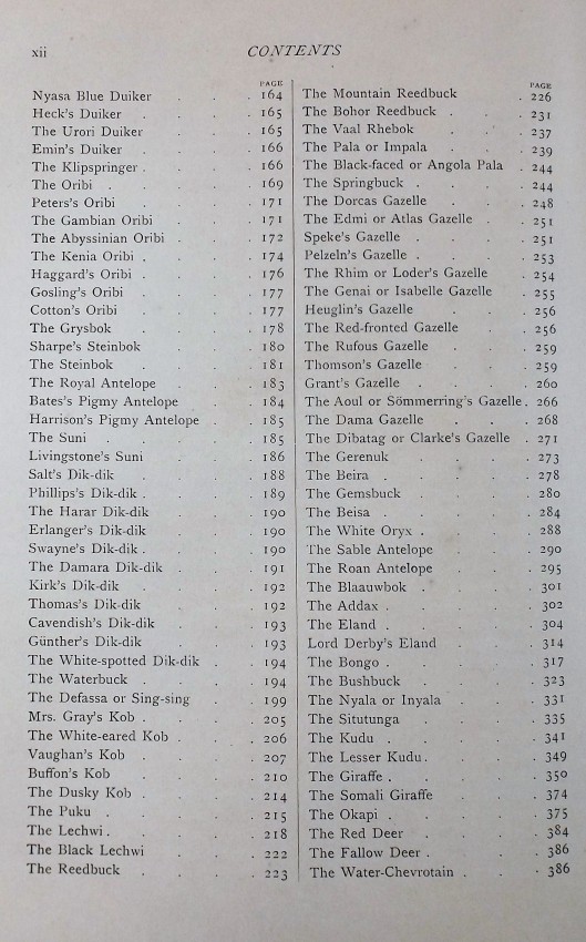 and small game animals of Africa. Lydekker utilised segments