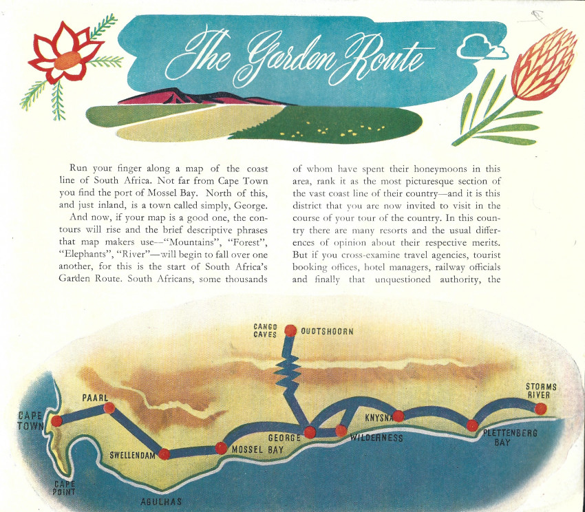 South African Tourist Corp., Pretoria, 1950. Condition: Very Good. Dust Jacket Condition: None. Softcover, travel brochure on the picturesque area between Capetown and Port Elizabeth along South Africa's coast., 48 pages illustrated in colour and b&w. No date but appears to be early 1950s. Clean, unmarked. Scarce.