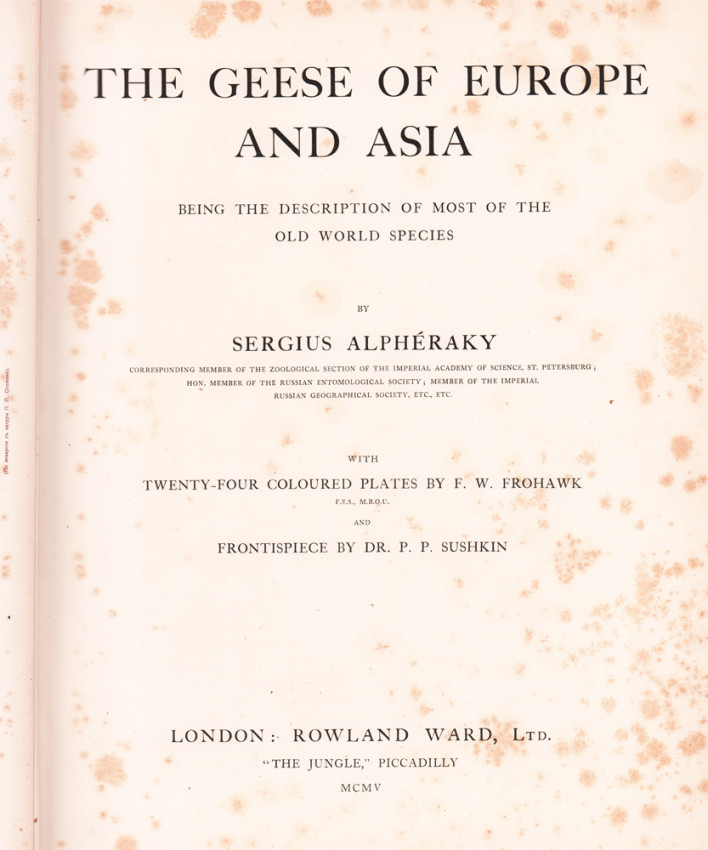 With twenty-four coloured plates by F.W.Frohawk and frontispiece by Dr P.P. Sushkin.
