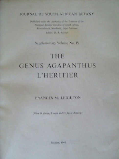 A beautifully illustrated monograph of this genus of South African bulbous plants , with colour plates by Miss W.F. Barker. \"Journal of South African Botany\" Supplementary volume no. 4. KERKHAM #365. Cloth. Pp. (VI),50, 8 colour plates, illustration, diagrams, maps. Covers a bit scarred & slightly insect damaged along bottom edge, light foxing.