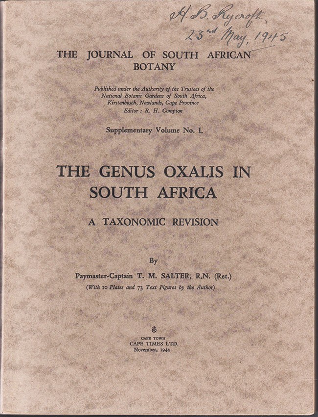 Captain Salter paid for the publication himself and according to R.H. Compton, the first editor of the Journal of South African Botany, the edition was limited to only 200 copies.