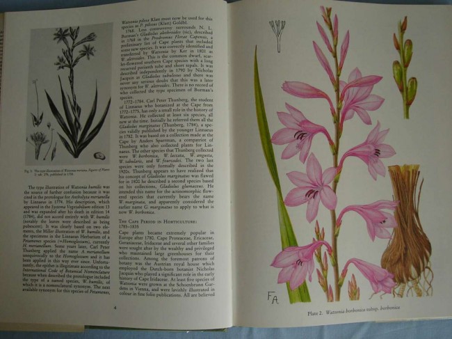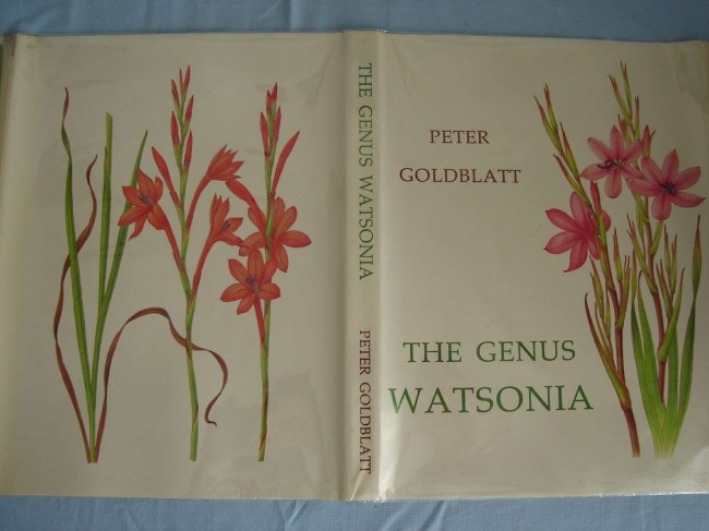 Green paper-covered boards. Both dust jacket and book are in Very Good condition. DJ illustrated with striking pictures of watsonias by Fay Anderson and protected by loose cellophane cover.