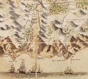 Aesthetically somewhere between a topographical survey and a landscape drawing, Lieutenant R. P. Read’s plan of St Helena was put up for sale in London at the end of 1815, in response to public demand for information on the “prisoner of Europe”.