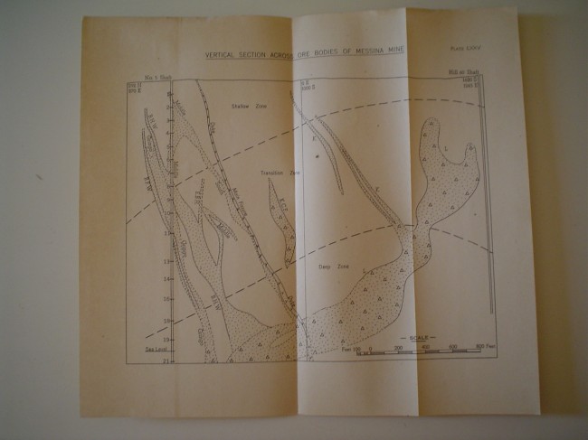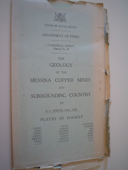 Envelope with 22 plates (maps) in the pocket. Geological Survey no. 40 of the Union of South Africa Department of Mines. All plates in very good condition. Plates on Messina mine, Campbell mine east, Harper mine.