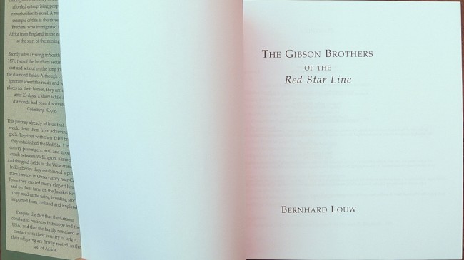 A remarkable story about three Gibson brothers who immigrated to South Africa from England in the early 1870's at the start of the mining era. Shortly after arriving, two of the brothers secured a Cape cart and set out on the long journey to the diamond fields. Completely ignorant of the roads and watering places for their horses, they arrived 23 days later, a short while after diamonds had been discovered at Colesberg kopje.