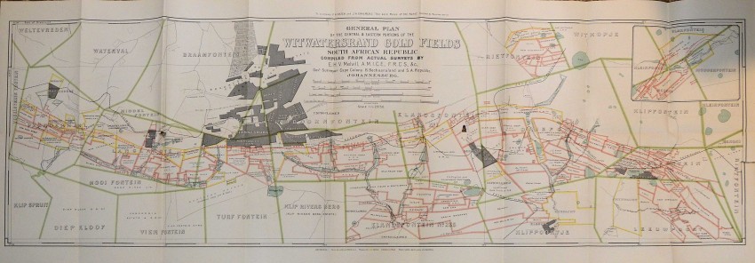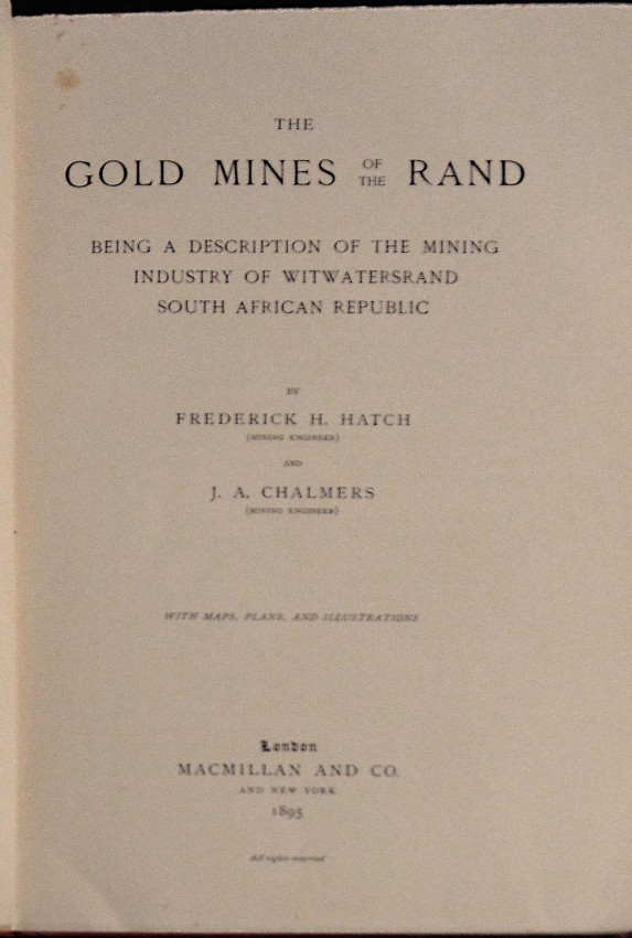 The first edition of this important S.African mining book. 306pp. Numerous charts and diagrams and two large folding maps enclosed in a pocket at the rear of the book. The first map is entitled "The Witwatersrand Gold Fields" and measures 133 x48cms. The second map "Map of The Southern Transvaal" measures 88x48cms.
