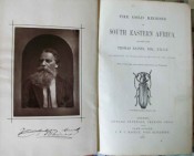 The book also contains an account of the gold discoveries in the Transvaal, which were then confined to the Leydenburg district, and it is stated that the Boer farmers were afraid "Llest the fame therof should get abroad and the English Government should follow and take possession of the country. Hardback with red-brown, decorative boards-gilt vignette of Zebra to front board, and gilt beatle and lettering to spine. Frontispiece-Preface xxiv, plus facsimile letter- 240 pages text with illustrations and advertising section included. Folding map in rear endpaper pocket. Very clean copy.
