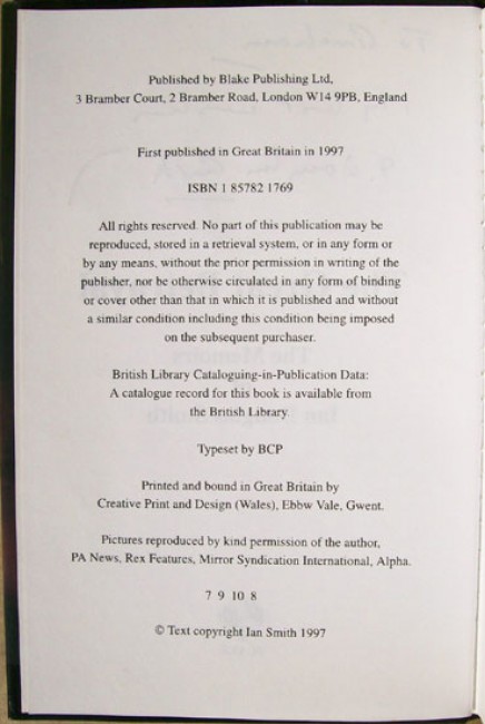 Inscribed "To Graham - My best wishes" and signed by Ian Smith.