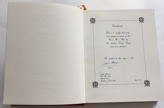 Facsimile reprint. 575 pages: illustrations, portraits. (Scripta Africana. First series: The two Anglo-Boer Wars). Quarto. Skivertex with gilding. Top edges gilt. Skivertex slip case.