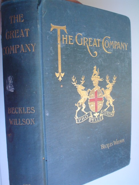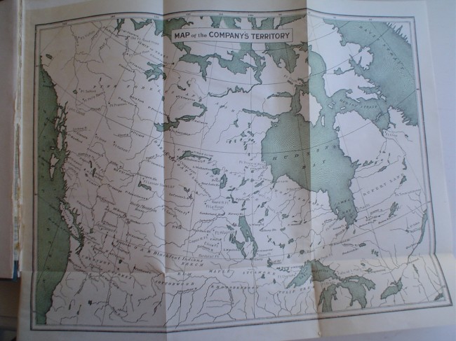 541 pages, 36 chapters, appendix, index, list of 12 full page illustrations, 69 illustrations in the text, one fold-out map in front of the Company's Territory. Inscription of previous owner in front. A clean and tight copy inside, the green boards show wear to the edges and spine.