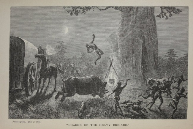 "Although the volume contains a description of a hunting trip through the Kalahari, the greater part of the work consists of a narrative of travels and adventures in the Transvaal. The author, an experienced sportsman, made arrangements with another keen hunter for a shooting expedition in 'Tropical Africa' with the intention of disembarking at Cape Town and taking a coaster to Walvisch Bay. This plan, however, did not prove feasible, and they decided to proceed up country via Natal." Mendelssohn p 601
