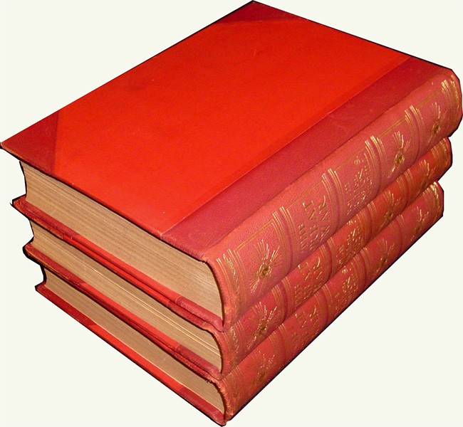 3 volumes, 1668 pages (continuously paginated), original half maroon leather("Library Binding") with red cloth sides - the leather is very lightly rubbed, sprinkled page edges, large bookplate on each front free endpaper, a good set.
