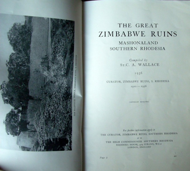 Booklet, foreword, preface, the ellipitical temple, the valley of the ruins, the acropolis ruins, 2 fold-out plans, places of interest near Zimbabwe, card boards, 86 pages, 145 x 220mm, condition: very good.