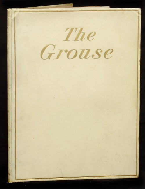 The binding is vellum, with gilt lettering and rules on the upper panel only. Plain endpapers, with pencil notes on the front free leaf. The title page is a photographic bromide, slightly chipped towards the fore and lower edges. The 32 other pp carry sketches and written contributions.