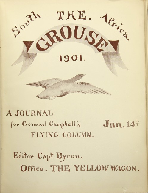 The subtitle of this rare item of ephemera is "A Journal for General Campbell's Flying Column. Editor Capt Byron. Office: The Yellow Wagon".