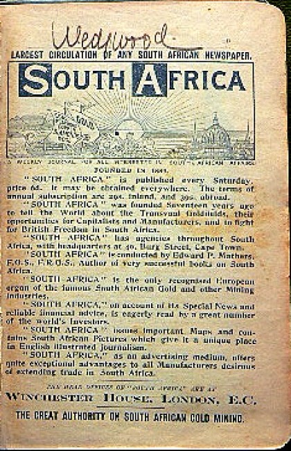 A comprehensive guide for the use of Tourists Sportsmen Invalids & Settlers. Includes many fascinating facts and tables. Interestingly, this edition also contains a chapter covering a diary of the Second Anglo Boer-War. The two advertisement sections (fore and aft)contribute a fascinating insight into the period.