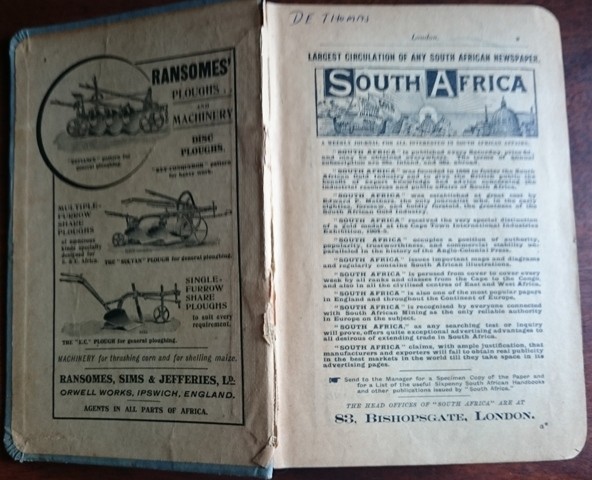 Twentieth Edition 1913; Sampson Low, Marston & Co., Ltd. London, for the Union-Castle Mail Steamship Company, Limited, 1914 Edition. 12mo, 12.8 x 18.8 cm, a – z, liv, 695, 107 pp. Original sage green cloth boards with pictorial black titles to front, black titles to spine, and Union-Castle Device and Mount Nelson Hotel on rear. Rounded corners. Illustrated with 23 colour maps, some folding, and countless period advertisements (a – z and last 107 pp). Contents and Index.