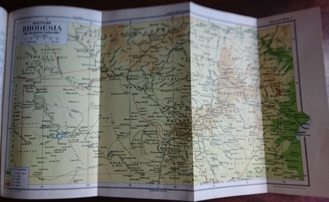 Condition: Wear to corners edges and spine tips. Binding cocked and slightly loose, but holding together well. All maps present. Splitting at folds to map of Northern Rhodesia. Some maps have tears at spine. Previous owner's name to page b.