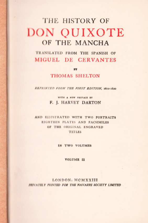 Translated from the Spanish of Miguel de Cervantes by Thomas Shelton.