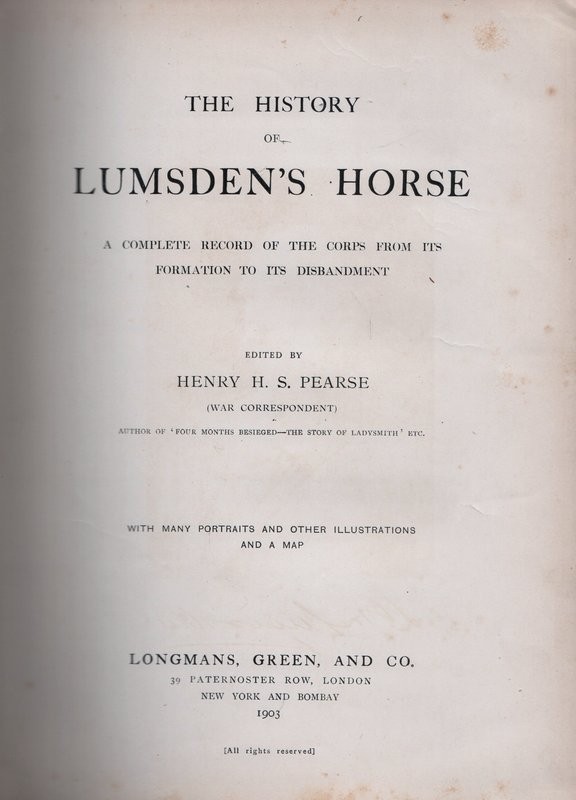 Formed in Calcutta in 1899 by Lt Colonel Dugald Mactavish Lumsden of the Assam Valley Light Horse, the Corps was raised from volunteers from various existing Indian regiments. The 250-strong Corps took part in the march to Bloemfontein, the occupation of Johannesburg and Pretoria, the pursuit of de Wet, and the Barberton & De Kaap Campaigns.