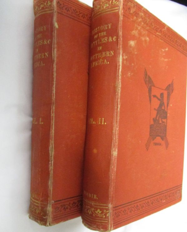 2 Volume set. Volume 1, 19 + 598 pages - Volume 2 21 + 600 pages. 2 Fold out maps at rear of books. Red Cloth with gilt lettering. Covers show wear with some colour loss. Hinges frail but intact. Previous owners name in black ink. Green patterned endpapers.