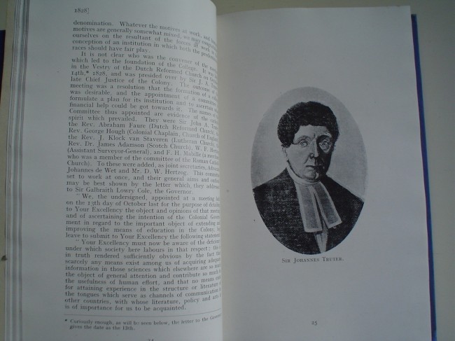 In two volumes and 136 illustrations. 1918 first edition. 918 pages. In good condition. Gilt lettering to the front and spine. The early pre-history of the University of Cape Town. Previous ownership in front.