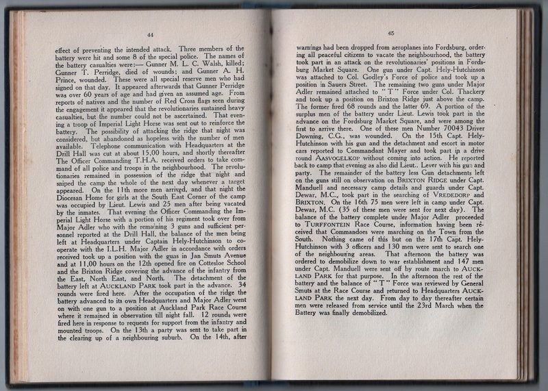 Formed in March 1904, the unit saw action in the Natal Rebellion, the German South West Africa campaign, and in the European theatre of the first World War. Author was Officer Commanding THA. Extensive appendices including Rolls of Honour.