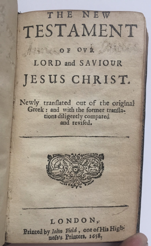[The “Pearl BIBLE”] The Holy Bible containing the Old Testament and the New newly translated out of the originall tongues and with the former translations diligently compared and revised by his Majesties speciall command. Appointed to be read in churches. London:Printed by John Field one of His Highness's printers, 1658.