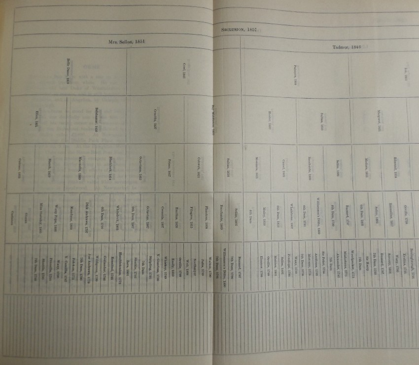 Folding pedigree tables with descriptive tissue-guards.