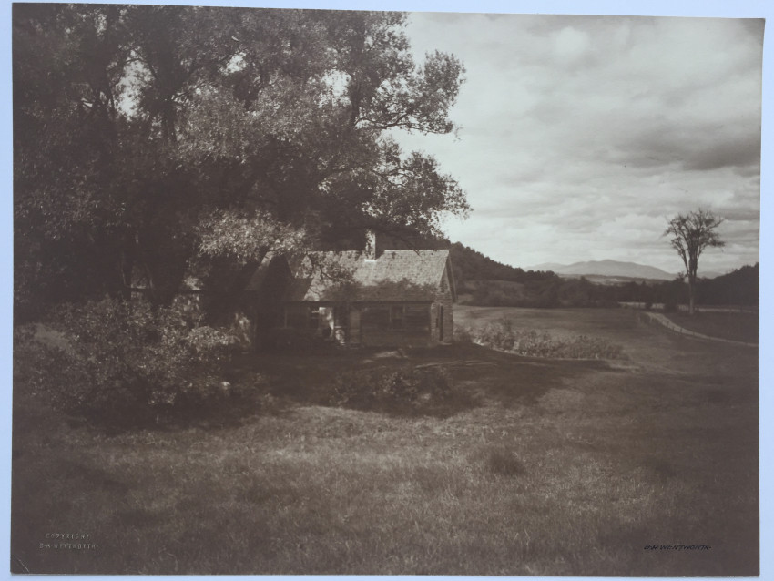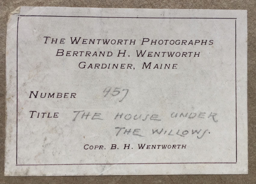 c. 1930s-40s, sepia gelatin print, Copyright embossed seal lower left, signed in ink lower right, signed And titled in ink on verso ‘457-The House Under The Willow‘ , in the original heavy paper folder as issued by Wentworth.