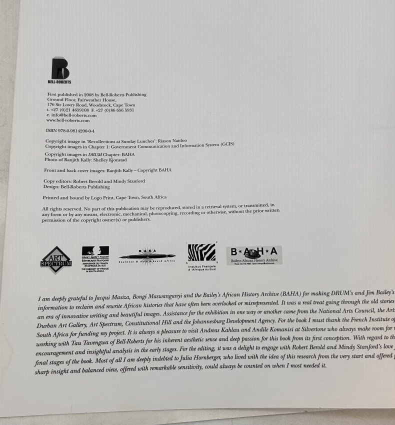 The book focuses on the 1950s because it is the era intrinsically linked to the legend of DRUM magazine. It is the decade that in many ways marked what has since been recognised as a highlight of modern 'black' life in the country predominantly seen through images of life in Sophiatown. The 1950s were a time of optimism on the continent: with Ghana gaining independence in 1957, there was hope that countries all over Africa would shortly follow suit. In South Africa the optimism of the decade ended with forced removals and violent killings, marked by the Sharpeville massacre in March 1960. Brutal enforcement of racist legislation was to epitomise the next 30 years.