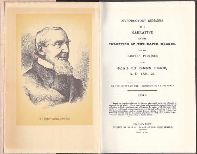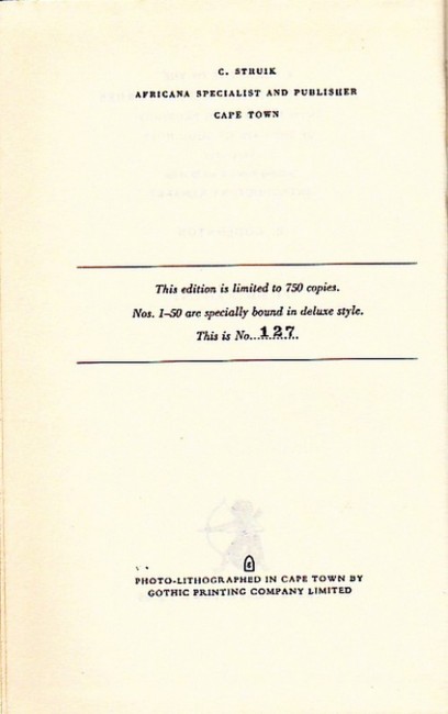 Numbered limited edition of the Graham's Town 1835 edition. Africana Collectanea XI. No. 127 of 750 copies.