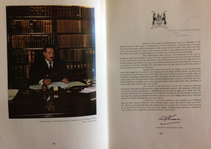 Originally intended as a commemoration of the eightieth anniversary of Johannesburg in 1966, publication was postponed for four years as "it became increasingly apparent that a very real need existed for a much more comprehensive record than the book originally contemplated".