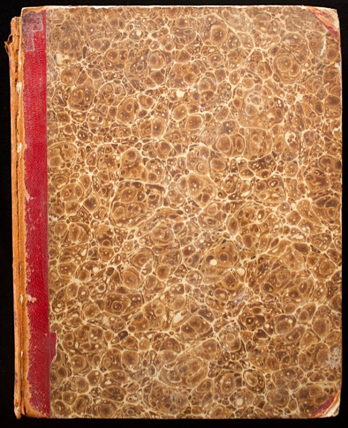 Original marbled boards and leather spine. Front panel detached. There are a few text illustrations. THIS COPY HAS THE MAP and is complete.