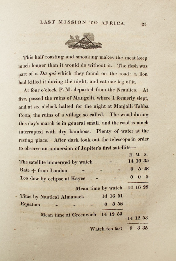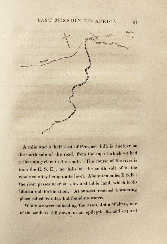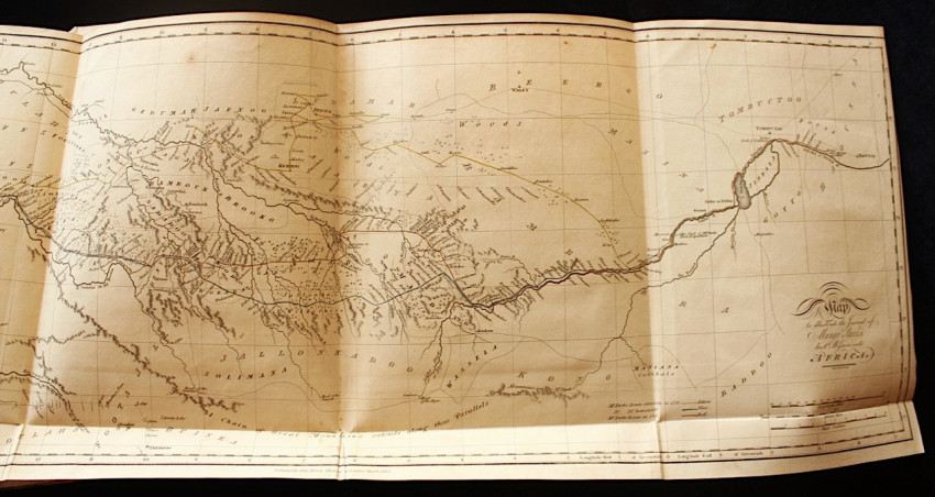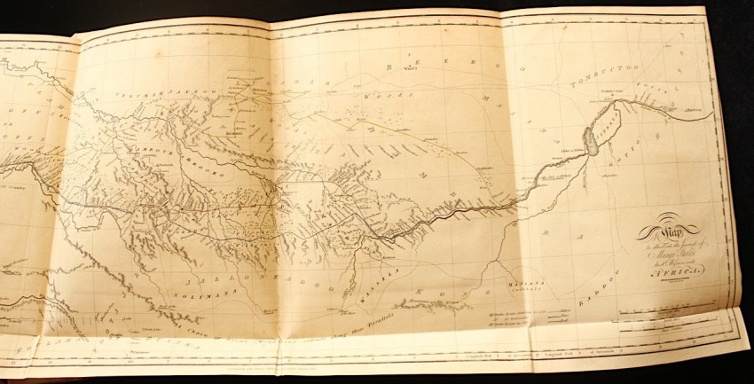 A rare copy of this cornerstone Africana. After the publication of the TRAVELS, Park withdrew to the quiet life of a country physician. He soon became bored with this existence and returned to Africa in 1805. He traveled on the Niger by canoe, but failed to reach the source of the river. He and his companions were killed by natives at Boussa after their canoe foundered on the rapids. Fortunately, Park had earlier sent his journals to Gambia, and they were finally published in 1815.